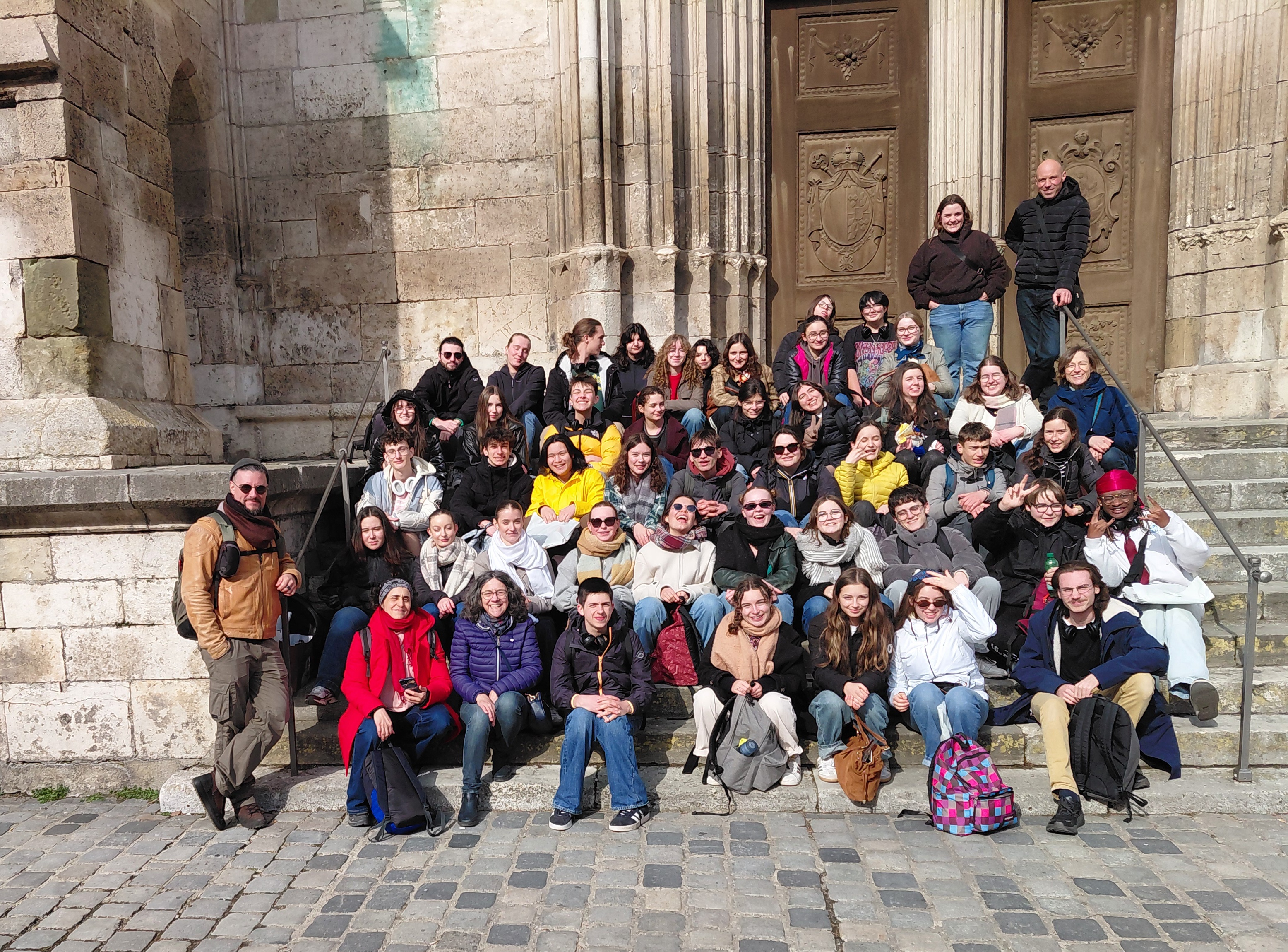 Nach über drei Jahren Pandemie-bedingter Zwangspause konnte heuer endlich der musikalische Austausch zwischen dem Chor der Chorschule „Maîtrise de la Loire“ und dem Gabrieli-Gymnasium fortgesetzt werden, nachdem das letzte gemeinsame Konzert buchstäblich in letzter Minute vor dem ersten großen „Lockdown“ im März 2020 stattgefunden hatte. Zum 800-jährigen Weihe-Jubiläum der zentralen Kirche „Collégiale“ in Montbrison waren Kammerchor, Großes Orchester und Sinfonisches Blasorchester II des GG eingeladen, mit den Sängerinnen und Sängern der „Maîtrise“ ein großes Konzert zu geben. Am Sonntag, den 2. Juli war es dann endlich soweit: 72 Schülerinnen und Schüler bestiegen mit ihren Lehrkräften Christine Bleitzhofer, Dominik Harrer, Christine Knabl und Christina Schiekofer zwei Busse und reisten nach Frankreich. In Montbrison angekommen wurden alle zunächst auf französische Familien verteilt, die die bayrischen Gäste eine Woche lang mit großer Herzlichkeit beherbergten und versorgten. Nebenbei war es den Schülerinnen und Schülern dadurch möglich, Land und Leute sozusagen von „innen heraus“ kennen zu lernen. Ab Montag fanden dann gemeinsame Proben statt und am Freitag folgte dann der Höhepunkt, auf den alle seit Anfang des Schuljahres hingearbeitet hatten: Das gemeinsame Konzert in der eindrucksvoll illuminierten Stadtkirche „Collégiale“. Dazu waren auch Vertreter unseres Vereins, sowie Martina Edl als 3. Bürgermeisterin und GG-Schulleiter Christof Neumayr angereist. Das fulminante Konzert endete mit stehenden Ovationen des Publikums. Der Abschied danach fiel emotional aus, schon am nächsten Morgen musste die Rückreise angetreten werden. Bei der Verabschiedung konnte man aber vielfach „A bientôt! - Bis bald!“ hören, denn alle hoffen auf eine baldige Wiederholung des gemeinsamen Musizierens – dann vielleicht im Eichstätter Dom.