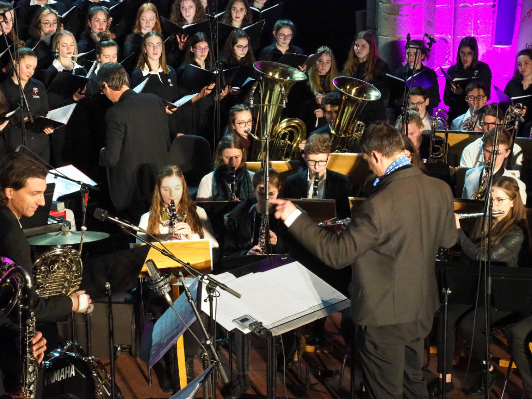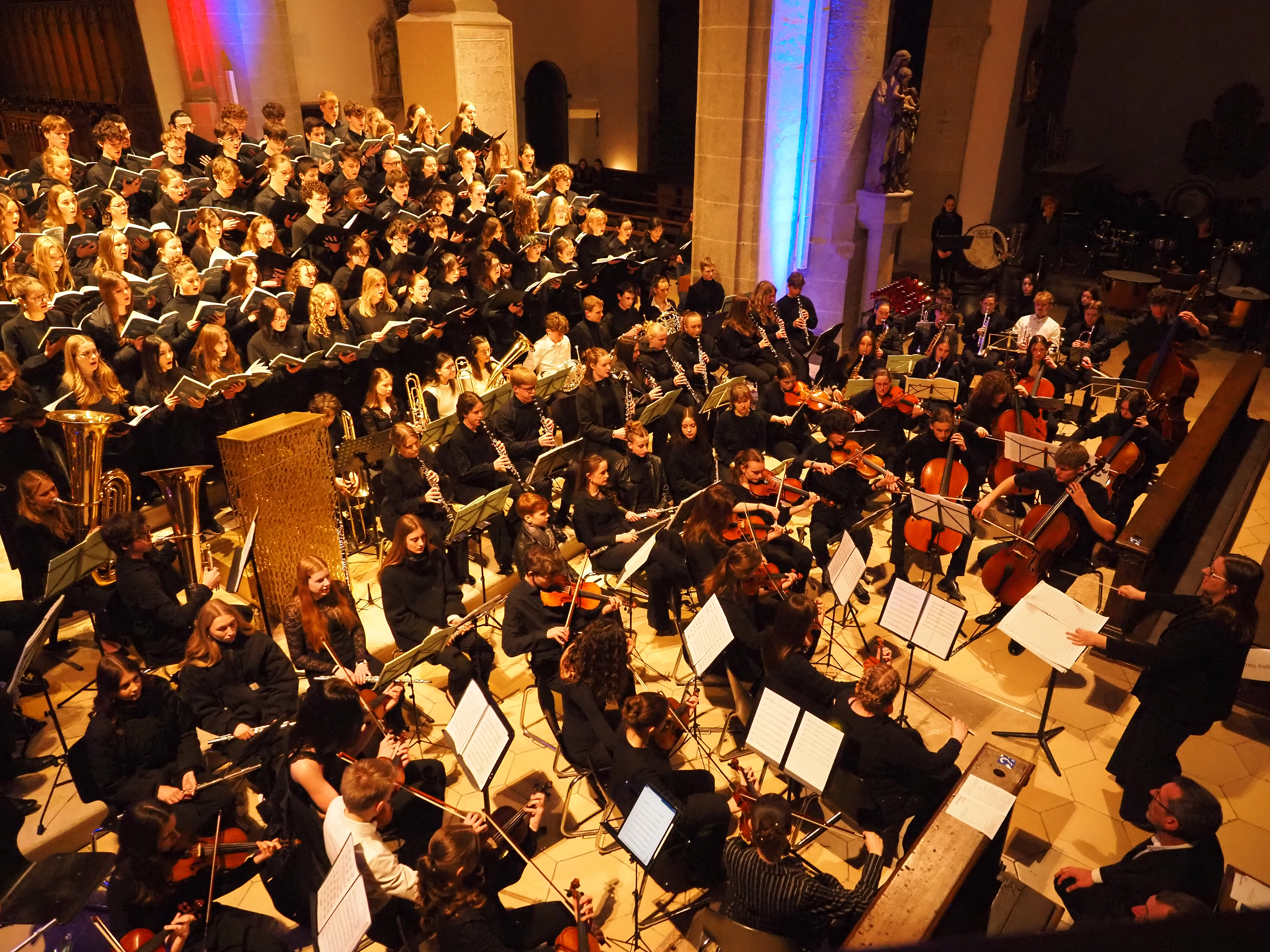 Es gibt Abende, die in der Geschichte einer Schule – und einer Stadt – einen besonderen Platz einnehmen: Die deutsch-französischen Gemeinschaftskonzerte des Gabrieli-Gymnasiums und seiner Gäste aus Montbrison am vergangenen Wochenende waren solche Ereignisse. In den ehrwürdigen Mauern des Eichstätter Doms sowie der Aula des GG verschmolzen deutsche und französische Stimmen und Instrumente zu einem Plädoyer für Frieden und Völkerfreundschaft. Das Projekt ist das Ergebnis einer langjährigen Partnerschaft zwischen Eichstätt und der französischen Gemeinde Montbrison im Département Loire in der Region Auvergne-Rhône-Alpes, unterstützt vom Verein „Freunde von Montbrison“. Seit 2018 wurde diese Verbindung um den Musikaustausch zwischen dem Gabrieli-Gymnasium und dem Musikgymnasium „Maîtrise de la Loire“ sowie neuerdings auch dem „Lycée de Beauregard“ erweitert. Den beiden Konzerten in Eichstätt war eine intensive Probenwoche der Ensembles des GG – gut 150 Schülerinnen und Schüler des Großen Chors, Großen Orchesters und Sinfonischen Blasorchesters - mit den angereisten 44 französischen Schülerinnen und Schülern sowie ihren Lehrern vorausgegangen. Untergebracht in lokalen Gastfamilien, entstanden aus dem musikalischen Austausch auch persönliche Erfahrungen, die den deutsch-französischen Kontakt weiter vertieften und echte Freundschaften entstehen ließen.