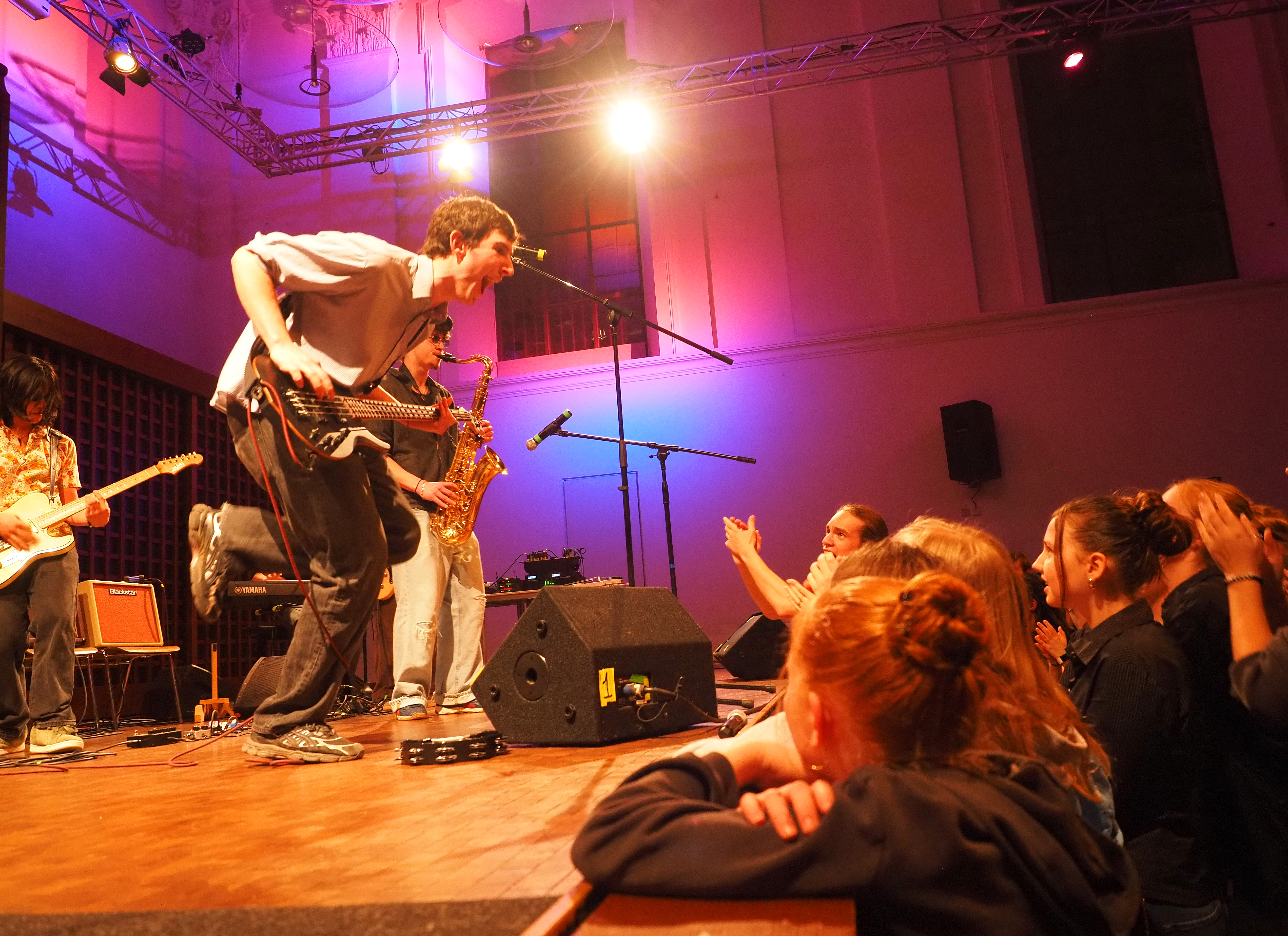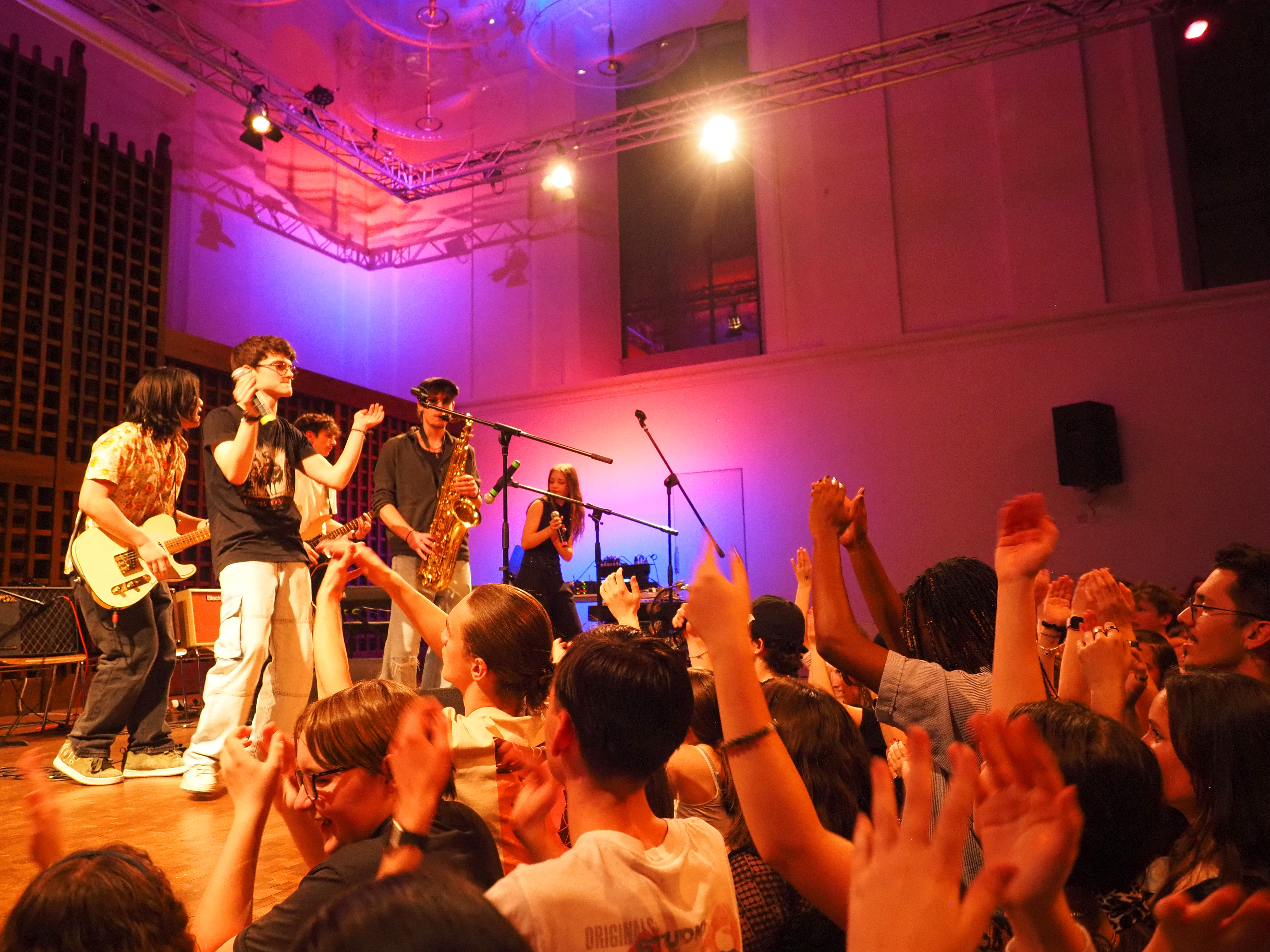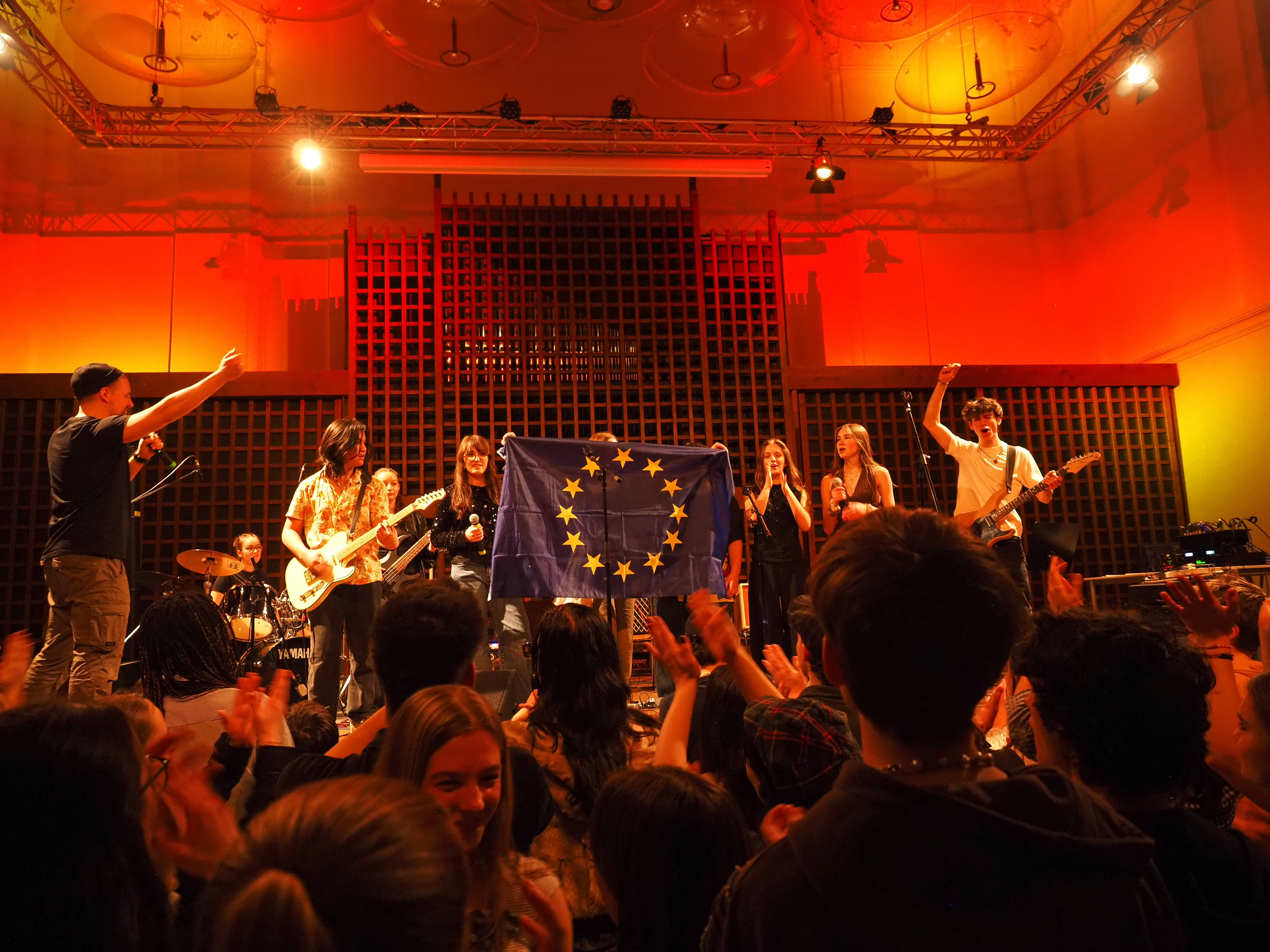 Für das Gabrieli-Gymnasium eher ungewöhnliche Klänge waren am Samstagabend in der Aula der Schule zu hören. Nach dem denkwürdigen Konzert im Hohen Dom hieß es am nächsten Abend "RockEd". Das GG und das Lycée de Beauregard luden zum Deutsch-französischen Rockkonzert. Für eine gelöste Stimmung und immer wieder frenetischen Jubel sorgten wechselnde Bandkonstellationen, die Schülerinnen und Schülern wie Konzertgäste zum Mitklatschen, -tanzen und -springen in dem bewusst nicht bestuhlten Front of Stage-Bereich animierten: Die gesamte Aula rockte und nahm sich damit die explizite Aufforderung Christof Neumayrs zu Herzen, der bei seiner deutsch-französischen Begrüßung zusammen mit Romain Chaverot, Musiklehrer am Lycée de Beauregard, explizit zum Mitklatschen und -rocken aufforderte. Bleibende Eindrücke und Freundschaften Da während der Woche die Proben vor allem am Nachmittag stattfanden, gab es für die französischen Gäste ein zusätzliches Programm zum Kennenlernen von Eichstätt und Umgebung, das finanziell von unserem Verein unterstützt wurde. So begrüßte sie der Oberbürgermeister Josef Grienberger im Rathaus und führte sie auf den Rathausturm, wo sich ihnen bei strahlendem Sonnenschein ein imposanter Blick bot. Außerdem zeigte und erklärte ihnen Ulrich Heider die Schönheiten der Stadt. Am Mittwoch machte die Gruppe einen Ausflug nach Regensburg. Dort konnten sie neben Bratwurstsemmeln und Shopping bei einem Besuch bei den Regensburger Domspatzen eine Singprobe genießen. Auch in den Familien wurden viele Unternehmungen gemacht, so dass man sich am Sonntagmorgen mit Tränen in den Augen, aber dem Wissen, dass hier – auch dank der Musik – wirkliche Freundschaften entstanden sind, verabschiedete.
